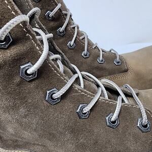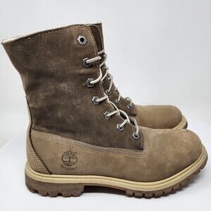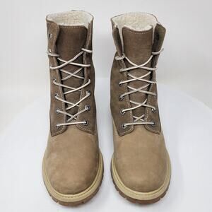 Timberland Teddy Fleece Fold Down Boots Women 7 Taupe Leather Waterproof Lace-up