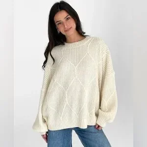 Grey Bandit Logan crewneck sweater. In great condition, only worn a few times. No rips, stains, or pilling. Ivory/cream color with fun stitching pattern. Size Small and fits oversized. The perfect slouchy fit without completely swimming in it.
