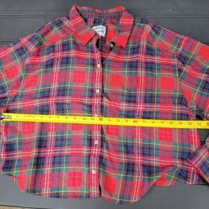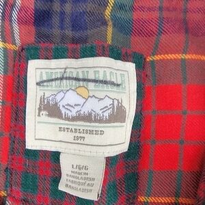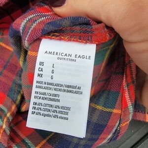 American Eagle Red Plaid Cropped Button Down L