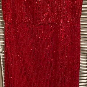 Glamorous red sequin dress. Perfect for special occasions. Eye-catching and elegant.