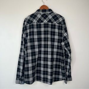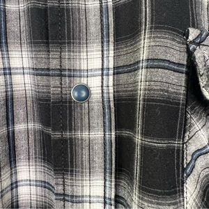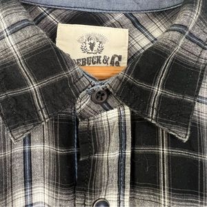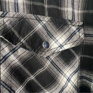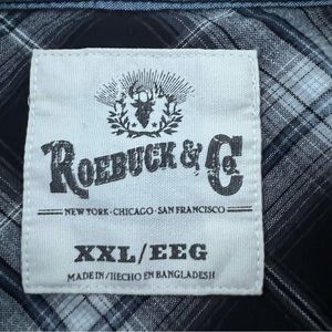 Roebuck & Co plaid Western shirt men’s black grey white blue snap buttons