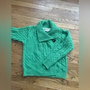 Green Aran Sweater Market Patchwork Cardigan with Collar