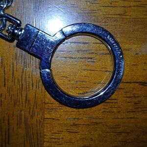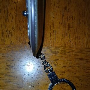 Silver color coin purse Keychain. Great for quick trip to store, holds change and keys! The keychain works, pull back on the square tab, and twist round section. Excellent condition. Clean inside and out see photos. Approximately 2.5".