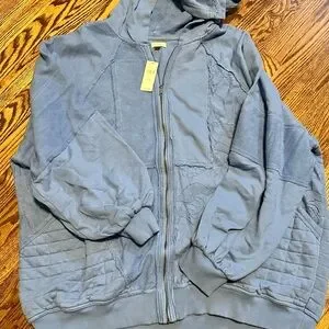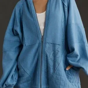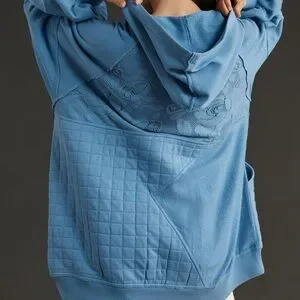 NWT Pilcro from Anthropologie Mixed Print Zip Up Hooded Sweatshirt. Beautiful blue color. Size small/medium oversized fit. Perfect condition.