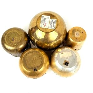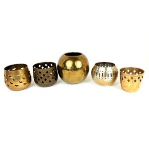 Set Of 5 India Brass Cut Out Candle Holders Lot Various Designs Clover, Duck,
