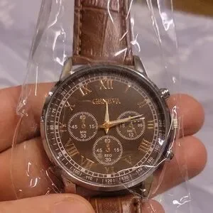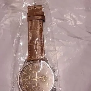 Geneva Brown Chronograph men's Leather Strap Watch. Never opened. NEW in Package