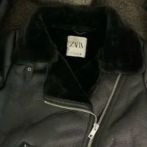 ZARA DOUBLE-FACED JACKET Moto Style Front zip pockets. metal buckles.