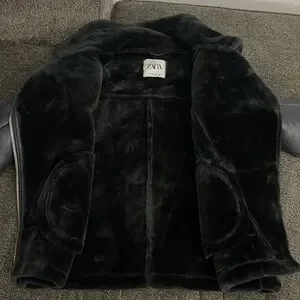 ZARA DOUBLE-FACED JACKET Size Medium Black with Silver Accents. Moto Style Looks like Soft leather. Front zip pockets. With belt loops (no belt). Contrasting inner lining. Metal zipper closure.