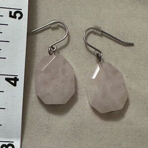Vintage Stainless steel hook earrings with large drop oval rose quartz stone. Beautiful natural pink color. Drilled all the way through. Faceted stones.
