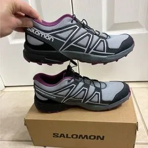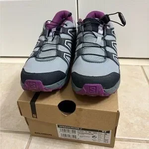 Size 6 in juniors fits size 7 women. Gently used Salomon hiking shoes. See box product name for details. Advertised as best for mixed and muddy terrain.