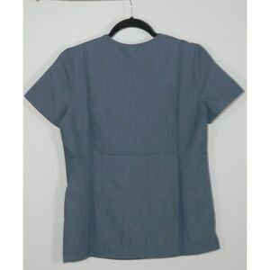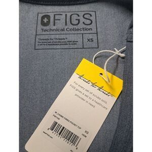 FIGS Technical Collection Scrub Top Women's Size X-Small Blue Heather Denim Casma Three Pocket