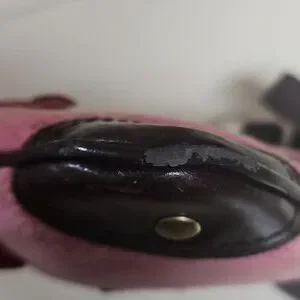 Gently used in great condition! The velour has some discoloration due to its age. Please see all pics and video closely. The leather on the corners have minor wear shown in the two last pics.