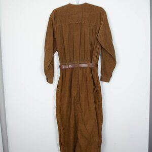 Vintage Liz Claiborne Corduroy Button Front Dress Belt Tan 80s