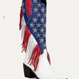 These heeled boots showcase a vibrant red and blue color scheme that adds a bold touch to any outfit. Designed for style and comfort, they feature a sleek silhouette that enhances your look. Perfect for making a statement at any event, these boots are a must-have addition to your footwear collection.