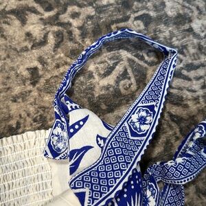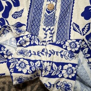 Women’s Rachel Zoe LINEN COBALT BLUE WHITE FLORAL PINEAPPLE garden Farm • size 6