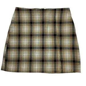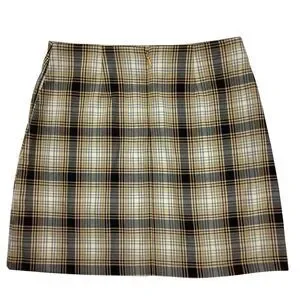 Urban Outfitters Women S Mini Skirt Plaid Mid Rise Yellow Black Gray Stretch