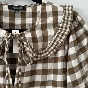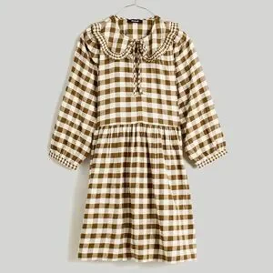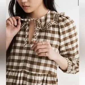 NWT Madewell Gingham Collared Puff-Sleeve Mini Dress