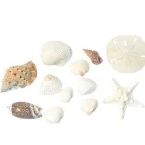 This is a mix of Florida sea shells. It includes 12 special shells. There is a Florida fighting conch, a white starfish, several scallops and a white sundial, to name a few.