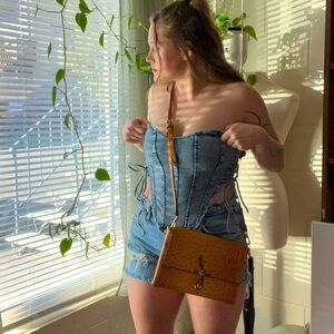 Golden/Yellow Faux Alligator Purse. Cute Alligator print purse with cross body strap, inner pockets and front closure. Lightly used, in Excellent condition. Brand unknown.