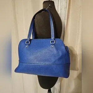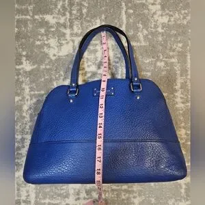 *The Kate Spade Lainey Glove Court Rare Royal Blue Leather Y2K Double Zip Purse Bag is a medium-sized satchel/two handle bag made of pebbled leather with a rectangular shape. It features a blue double handle with an 8.5-inch drop, 14 karat gold-plated hardware, and a zip closure. The interior is lined with polyester in a multicolor print and includes inner pockets, dividers, a key clip, and a mobile phone pocket. This elegant bag is perfect for various occasions such as travel, weddings, parties, workwear, and more, catering to a classy and timeless style.