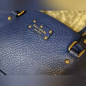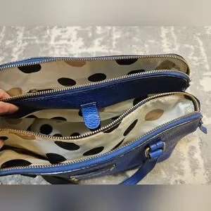 Kate Spade Glove Court Lainey 14 Karat Plated Blue Leather Double Zip Purse Bag