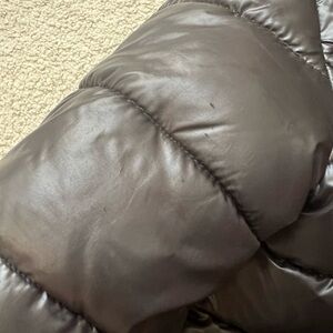 Girls puffer coat. Size:4t. Double zip closure. Faux fur hoodie. 2 side pockets. See flaws in pictures.
