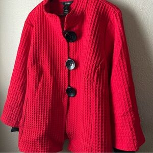 Ali Miles Womens Red Waffle Knit Mock Neck Button Front Peplum Top Jacket 1X