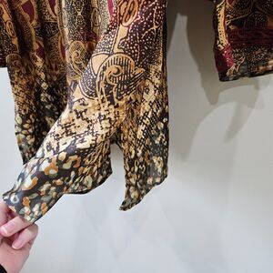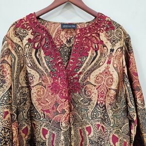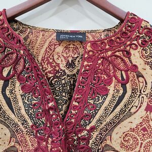 Jones New York Womens Silky Popover Top Multicolor Embroidered Artsy Bohemian