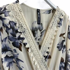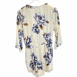 Design Lab Floral Romper Cream Blue Size L Shorts Lace V Neck Half Sleeve