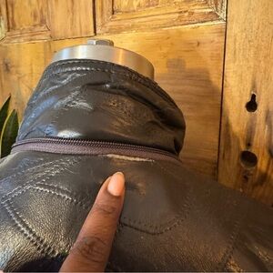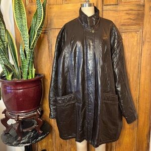 Brown leather quilted oversized patchwork jacket