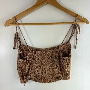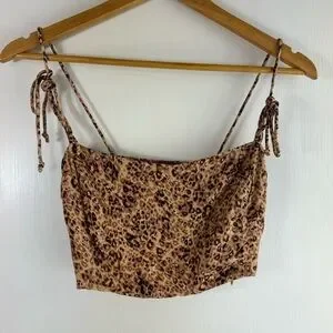 Aritzia Wilfred Penelope Leopard Print Tie Shoulder Smocked Back Camisole Tank