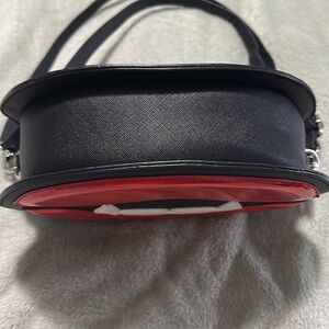 Super cute Vampire themed piece to wear for any occasion. Has holographic red lips with white fangs on front and a removable adjustable strap to go from shoulder bag, crossbody to clutch.