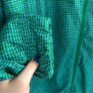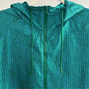 The material is like a wind breaker, not necessarily waterproof but water repellent