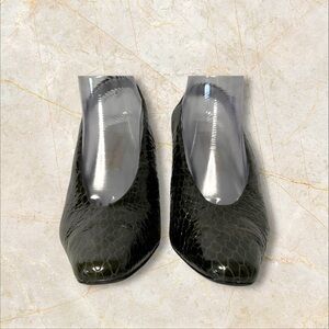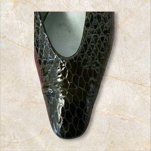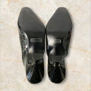Bellini Black Patent Croc Heel SZ 11 Women Leather Ankle Strap Coquette Dinner