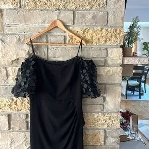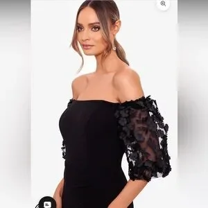 Xscape "MELANIE" 3D FLORAL SLEEVE SCUBA CREPE GOWN Black Size 16