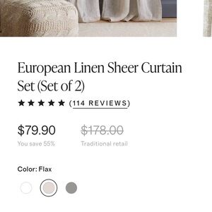 NWOT QUINCE 48x96 European Linen Sheer Curtain Flax (2 panels)