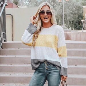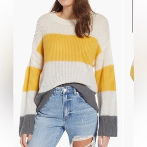 Good used condition! From the BP section of Nordstrom. Cream yellow and grey striped sweater. Oversized, boxy fit.