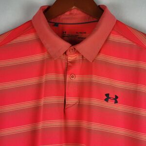 Under Armour Golf Polo Mens XL Neon Orange Stripe UA Tech Performance Shirt