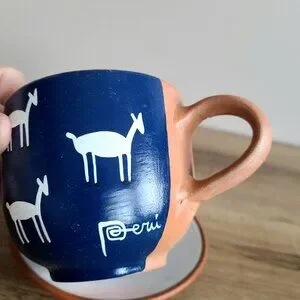 Peru red clay handmade hand painted tea/coffee cup with saucer.