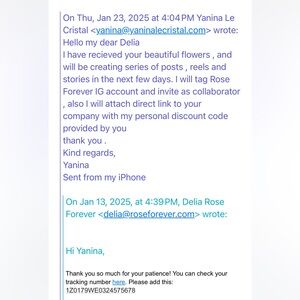 @tmcclam1 these roses were purchased for photo shoot only ( I only opened up box once for few min) as mentioned above , purchased on January 23rd. 2025 refer to last photo ( email communications with ROSE FOREVER COMPANY)