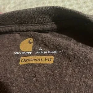 Carhartt t-shirt men’s large original fit, brown. Lightly worn but in good shape still. Currently downsizing on lots of extra clothes I have laying around that I don’t fit into.