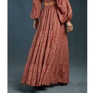 Boho Floral Print High Waisted Stretchy Waist Maxi Skirt