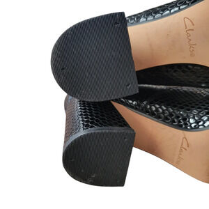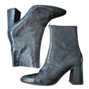 Clarks Laina 85 Black Reptile Snake Embossed Patent Leather Boots Women Size 9.5