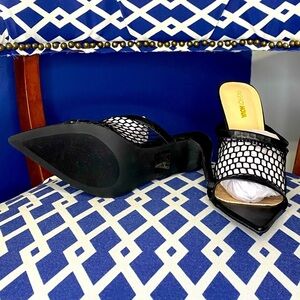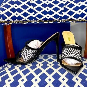 Black pointed fashion nova fishnet high heel mule sandals sz 10