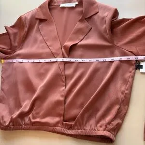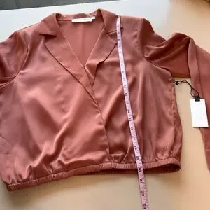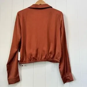 ASTR The Label Women's Calypso Long Sleeve Cropped Collared Blouse Top Large in Terra Cotta NWT