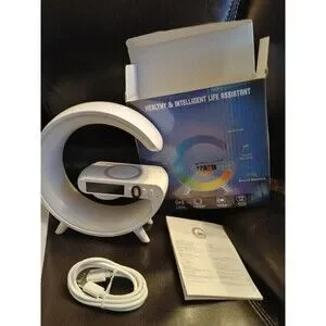 This is a phone charger, lamp, clock, and so much more! A great size and the color white matches any decor. You can set the colors to any or all. Charge your phone while you listen to your favorite tunes and rock to the color-changing lights.