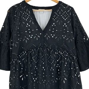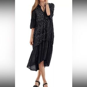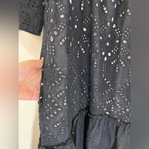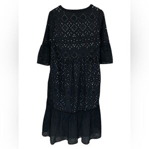 Sundance Selma Eyelet Midi Dress Black Ruffle Cotton Boho Women’s Size Medium