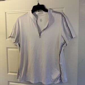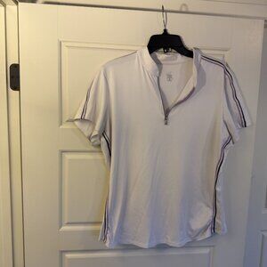 Tail Golf Polo Shirt White with Stripe Detail Stretchy Activewear Top Size XL