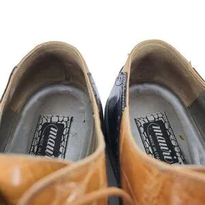 Mauri Vintage Alligator Exotic Mens 12M Honey Tan Navy Blue Dress Shoes Italy