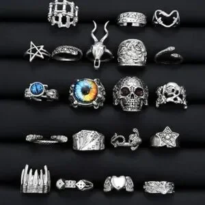 20 Pc Punk Rings Heavy Metal Alt Jewelry Alt Goth Ring Set